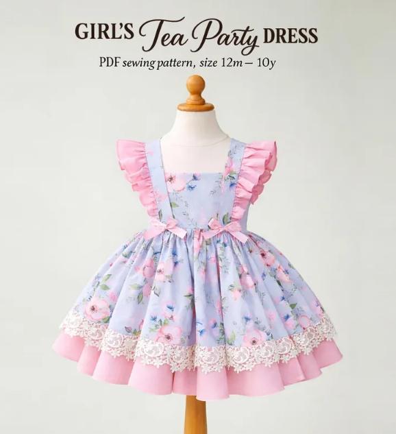 Выкройка платья для чаепития для девочек (12 месяцев – 10 лет) в формате PDF.